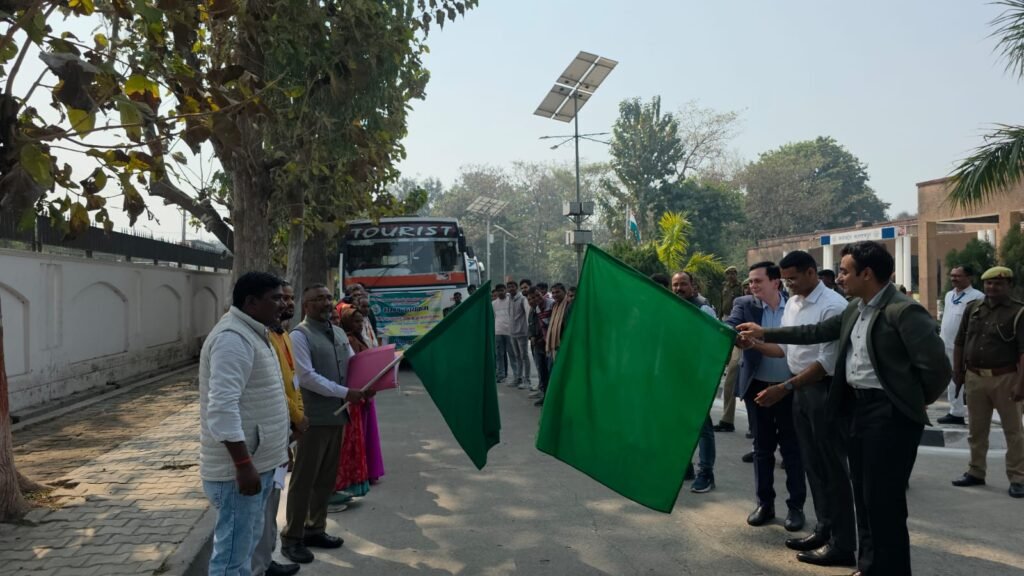 बलरामपुर -जनपद के कृषकों को आधुनिक कृषि तकनीकों से जोड़ने, वैज्ञानिक खेती को बढ़ावा देने के उद्देश्य से जिलाधिकारी विपिन कुमार जैन द्वारा अंतरजनपदीय कृषि प्रशिक्षण कार्यक्रम के तहत कृषकों के दल को कलेक्ट्रेट परिसर से हरी झंडी दिखाकर रवाना किया गया।