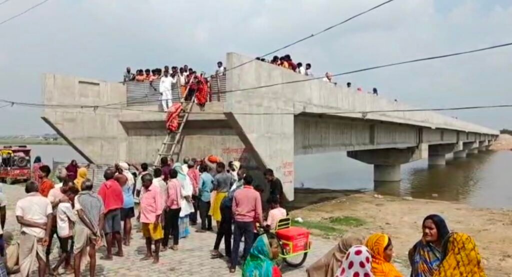 17 करोड 50 लाख की लागत से सेतु निगम द्वारा सरयू नदी पर बनाये गये पुल का नहीं बना अप्रोच मार्ग ।जान जोखिम मे डालकर लकड़ी की सीढ़ियों के सहारे आवागमन कर रही क्षेत्रीय जनता।