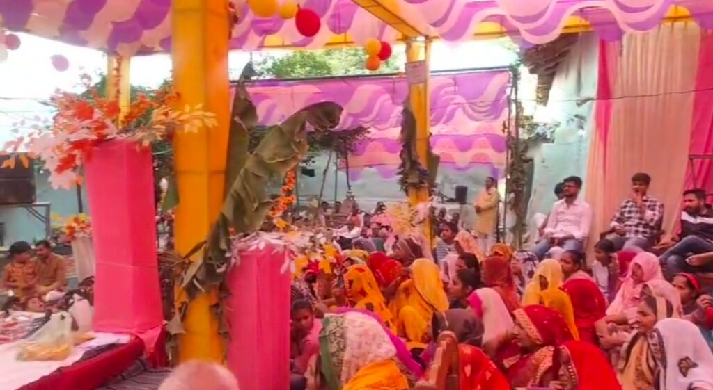 श्री मद्भागवत कथा पुराण के आयोजन में शामिल हुए भाजपा जिलाध्यक्ष।