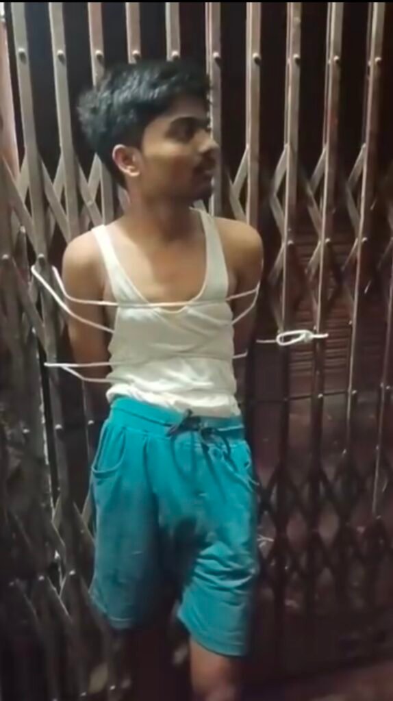 प्रेमी को घर वालों ने दी तालिबानी सजा शटर में रस्सियों से बांधकर की जमकर पिटाई